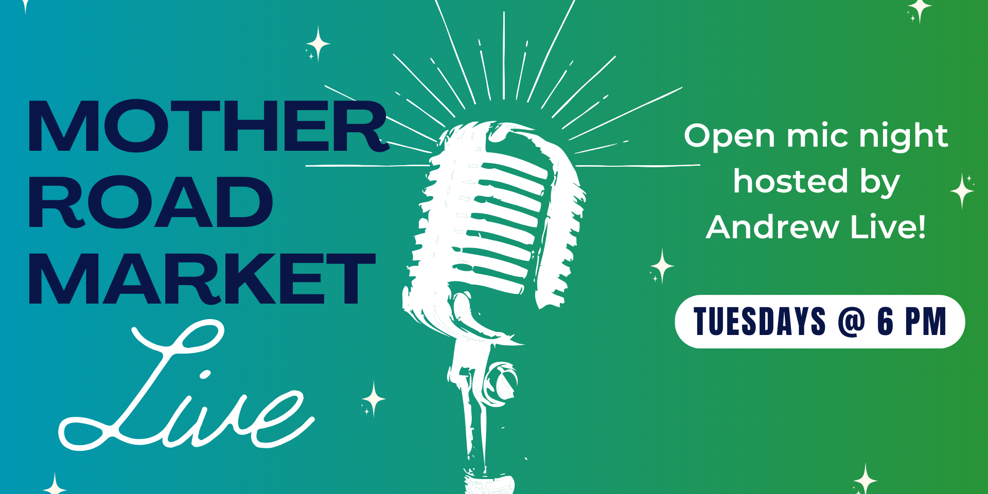 Every Tuesday at 6 PM, the stage comes alive at Mother Road Market!